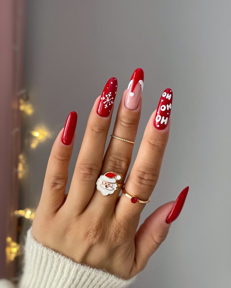 Who doesn’t love Rudolph? These nail designs are as charming as the red-nosed reindeer himself. His whimsical antler motifs and cute little nose perfectly capture the joy and nostalgia of the season. Let your fingertips tell a festive tale and spread Rudolph’s endearing spirit with every glance.