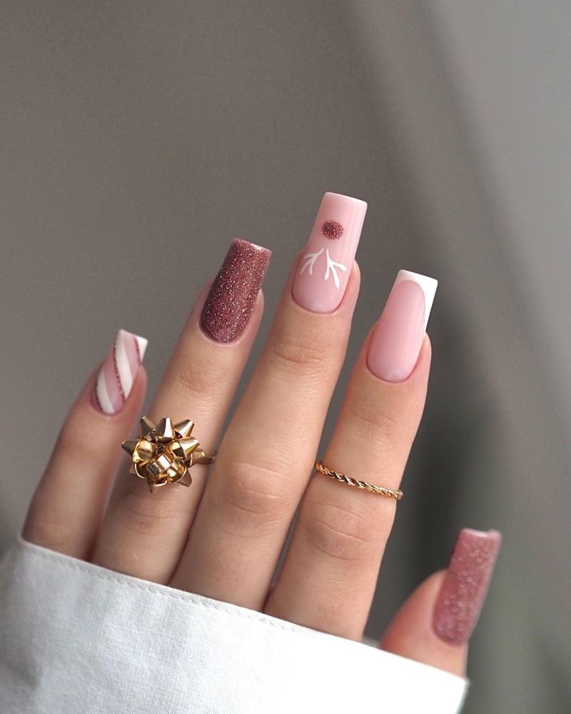 For a minimalistic but pretty look that is more suitable for the office or any formal holiday party, these glitter and sparkly holiday nails will undoubtedly dazzle and delight. The elegant designs on your nails will bring a subtle and sophisticated charm, allowing you to express your festive spirit with grace and style.
